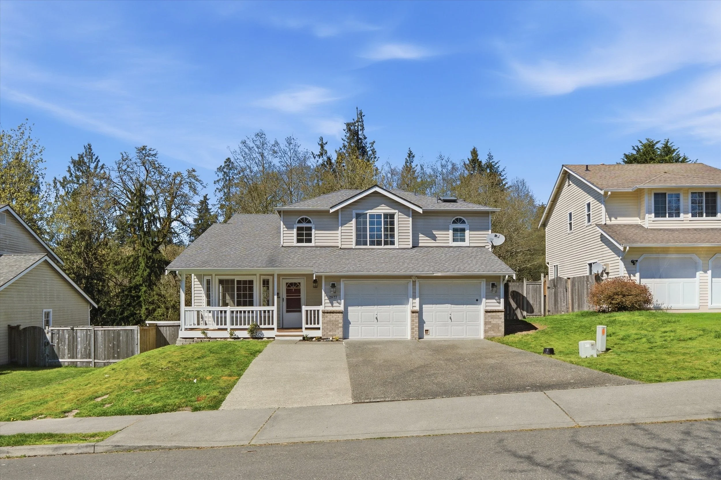 Enjoy easy living in this 4-bedroom, 2.5-bath home in the heart of Port Orchard, offering 1,921 sq ft of comfortable living space and thoughtful touches added over time. Vaulted ceilings and a cozy gas fireplace create a warm, inviting atmosphere in the open-concept living area, which flows seamlessly into the kitchen and dining space with an eating nook—ideal for everyday living and entertaining. Step outside to a massive Trex deck overlooking a serene greenbelt, providing a private, sun-drenched backyard retreat. Updates include new carpet, refinished hardwood floors, accent walls, updated light fixtures, newer appliances, plus hot water tank and 50 year roof. The spacious primary suite features a 5-piece ensuite bath, while the fully fenced backyard and Ring security system add comfort and peace of mind. Enjoy a welcoming community with a neighborhood playground, all just minutes from the waterfront, vibrant downtown Port Orchard, shopping, dining, and only 2 miles from South Kitsap Regional Park—perfect for outdoor enthusiasts.